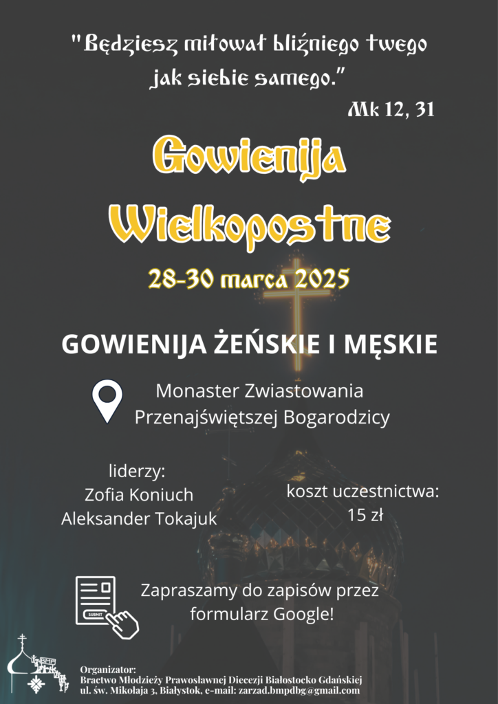 Dodatkowo w piątek po wieczornym nabożeństwie:„Wielki Post jako wiosna duszy” – o. Iow Siwierski