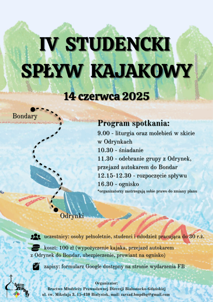 (wypożyczenie kajaka, przejazd autokarem, ubezpieczenie, prowiant na ognisko)