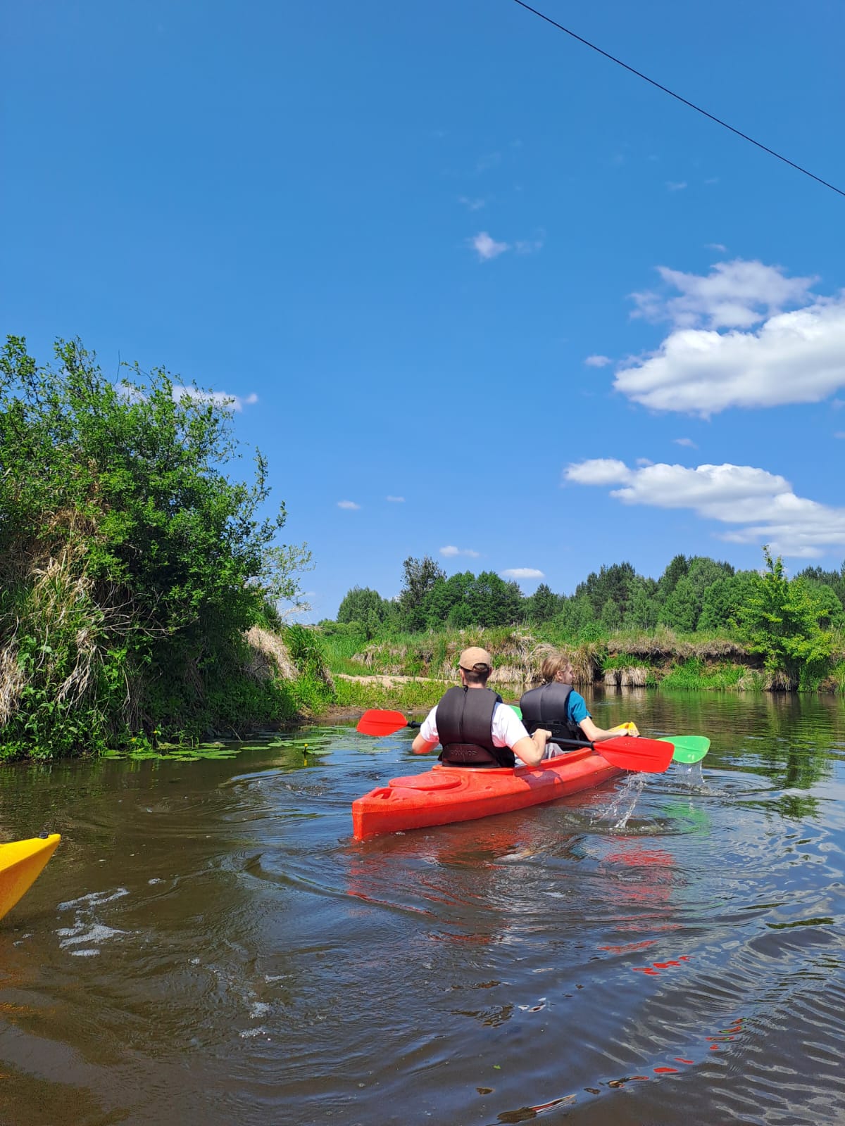 Po posileniu się i chwili odpoczynku, uczestnicy wyruszyli autokarem do miejscowości Bondary, skąd rozpoczął się spływ kajakowy rzeką Narew. Trasa wiodła przez malownicze tereny Podlasia – pełne zieleni, ciszy i piękna przyrody, które sprzyjały nie tylko aktywności fizycznej, ale również rozmowom, refleksji i integracji.