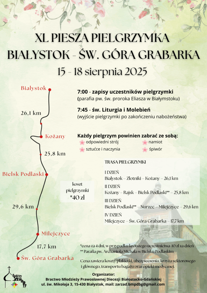 15–18 sierpnia 2025 r. odbędzie się XL Piesza Pielgrzymka Białystok – Święta Góra Grabarka.