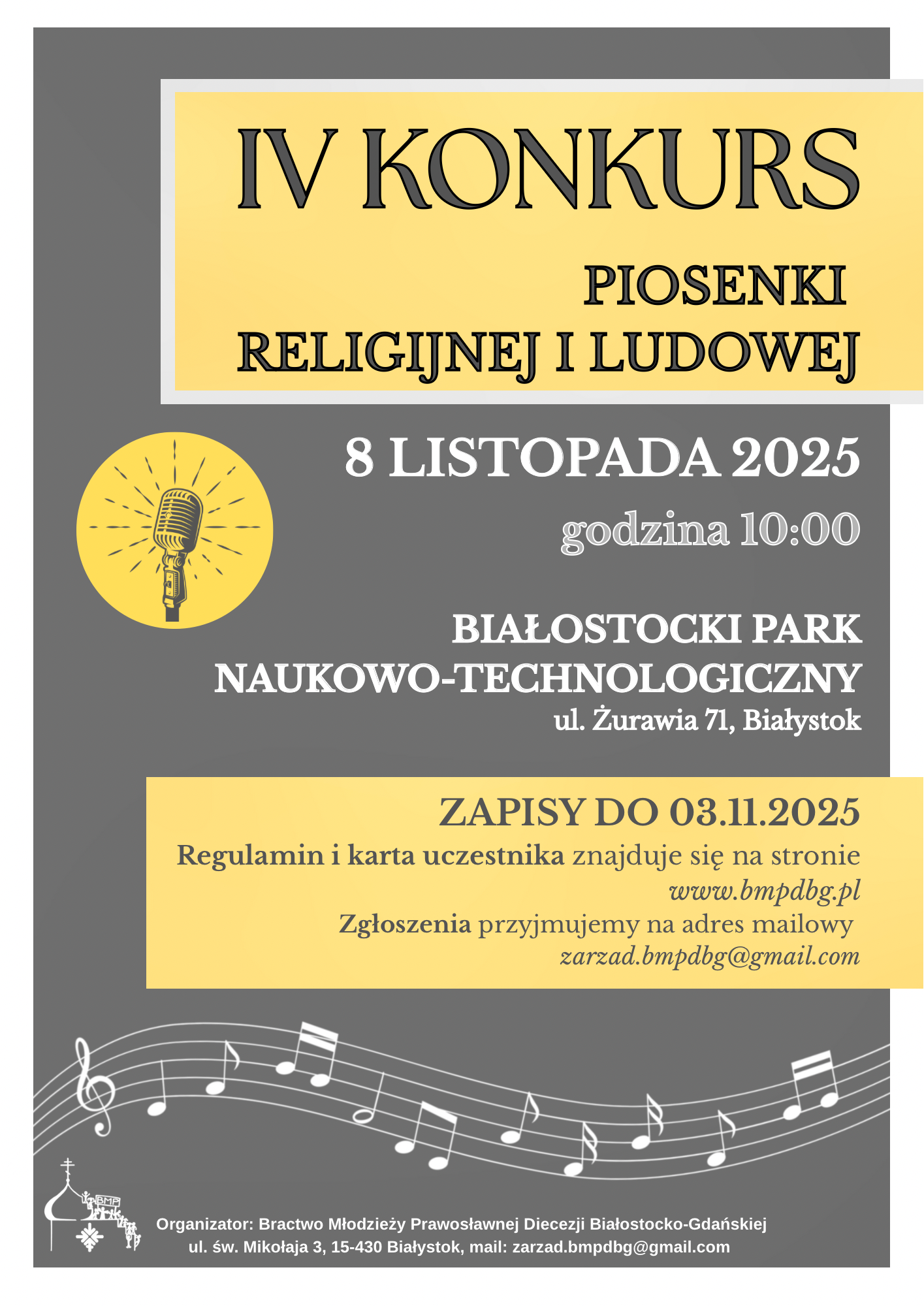 Zapraszamy na IV Konkurs Piosenki Religijnej i Ludowej