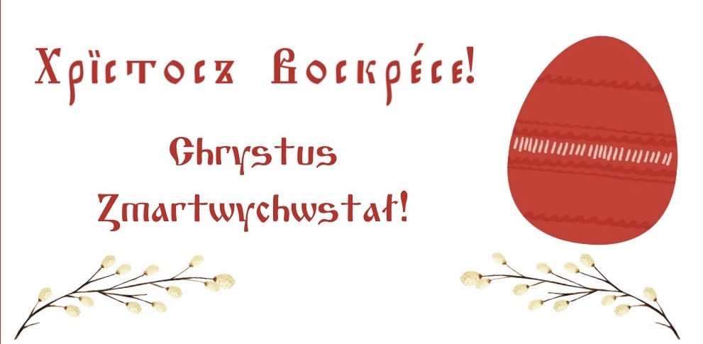 Христос Воскресе! Воистину Воскресе!Chrystus Zmartwychwstał! Zaprawdę Zmartwychwstał!Χριστός ἀνέστη! Ἀληθῶς ἀνέστη!Christ is Risen! Truly, He is Risen! Niech radość Świętej Paschy